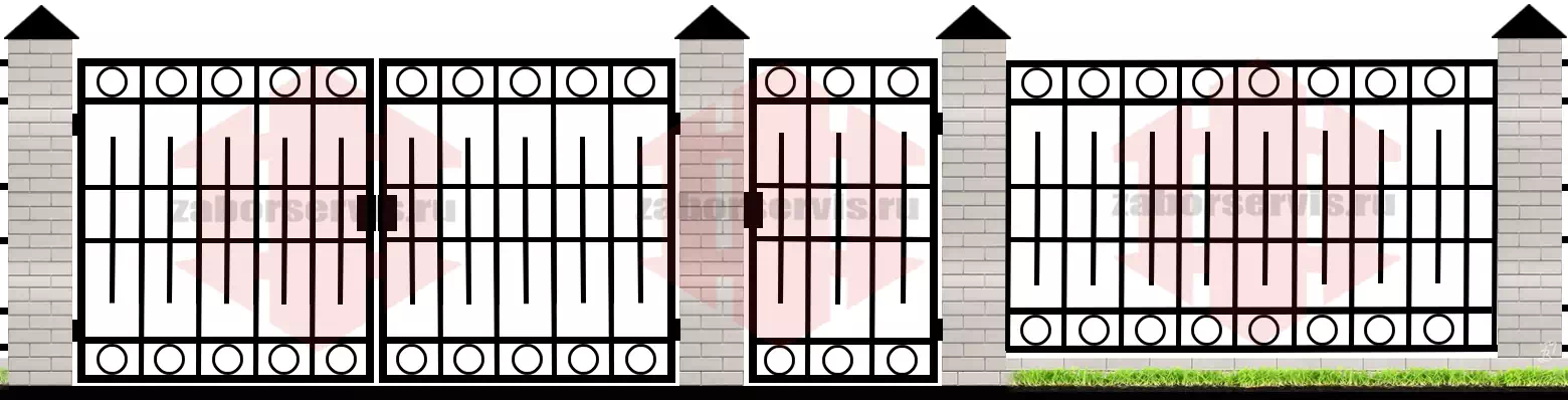 Забор из 3Д панелей ячейка 200х55 (на крашеных столбах 60x60)